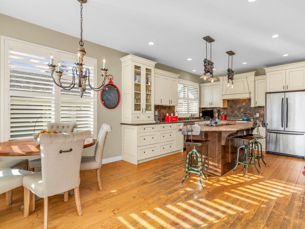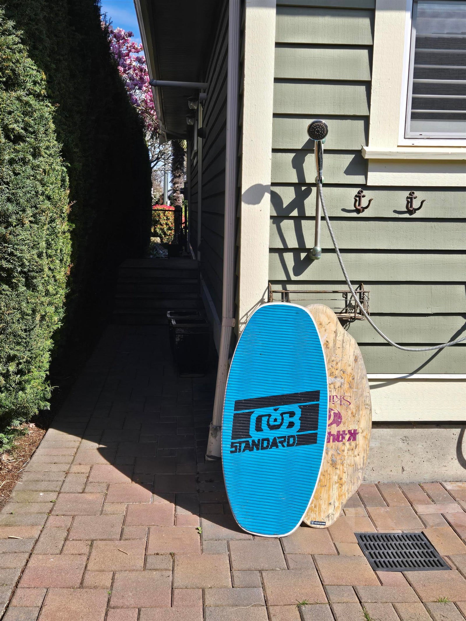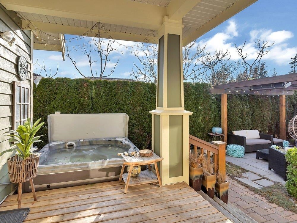 Custom built home, across from the beach, w ocean views from the 2 upper beds & balcony, in Boundary Bay. Filled w natural light & boasting lrg principal entertaining areas both inside & out, this gorgeous 4 bed home-den/1 bed on main & primary w huge wlk-in closet +ensuite upstairs, offers a gorgeous kitchen w huge island, 6 burner Bertazzoni gas range, 2 sets of french doors to back, stunning Restoration Hardware lighting, California shutters, rustic fir hdwood floors, 3 full baths, 3 cozy fireplaces-1 outside in the oasis like exterior living room/pergola next to hot tub and outdoor shower, near 300 sq ft full height unfinished attic, dual street access, irrigation, wrap-around veranda with sunny East, South & West exposure & parking for 6 cars! Peaceful living in Boundary!