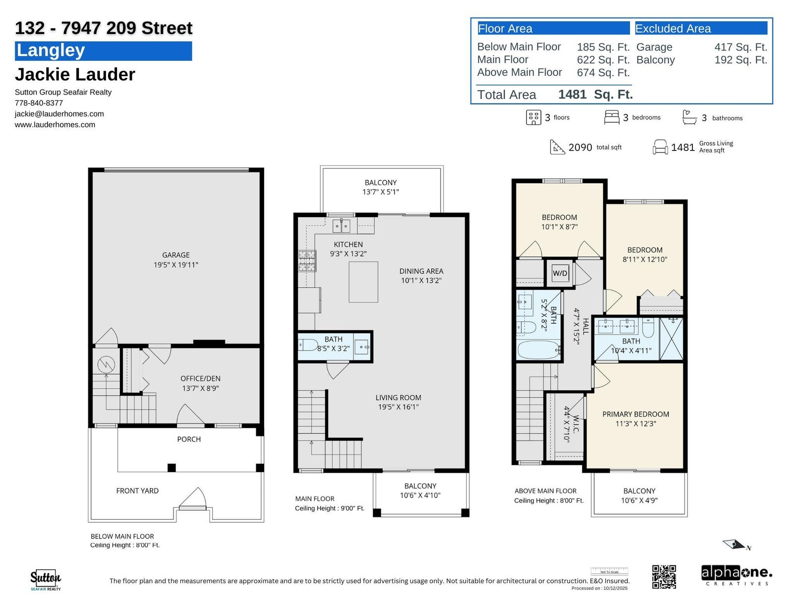 Breathtaking 3-bed + large DEN at 'Luxia at Yorkson' in Willoughby Heights! Private w open air corridors outside windows, & awe inspiring views from 3(!!!) decks both east & west + a fenced area at the front entry & filled w natural light all day! The 1481 sqft of open living boasts a lrg den by the entry, expansive 9 ft. ceilings on the main, a huge living rm, a well appointed kitchen w quartz counters, Grohe faucets, a 5 burner gas stove, st stl appliances, an island & a lrg deck off the spacious dining rm, a powdr rm on the main & up 2 full baths + 3 spacious beds. Windows upgraded w screens, 2 car private garage,& an incredible location within Luxia w gorgeous views & privacy & close hwy access,great schools & shopping!Showing by apptmt Wed 12-1,Thurs 6-8 & Sat 10-2 Must book your time