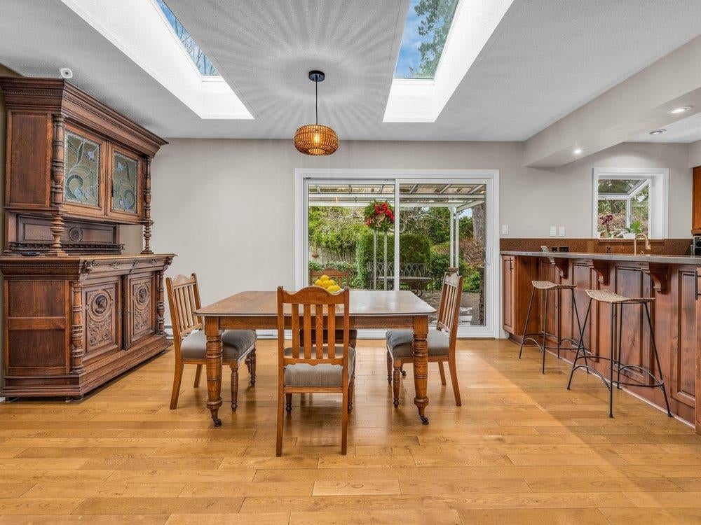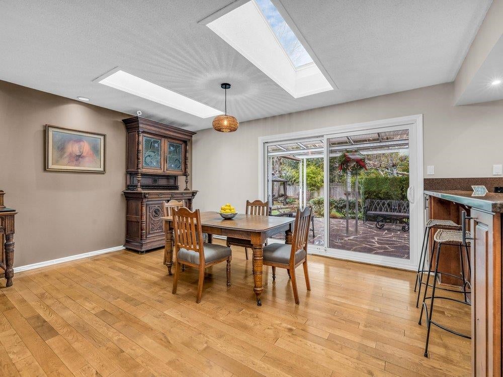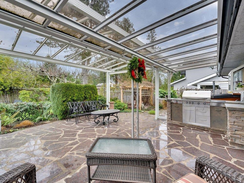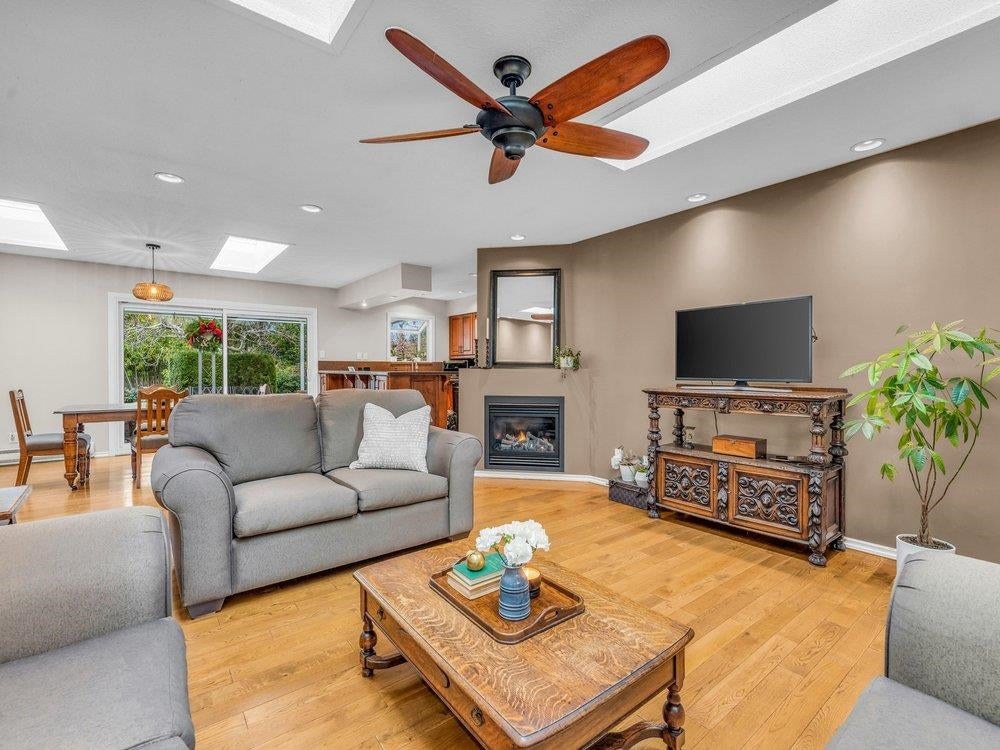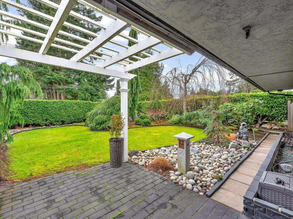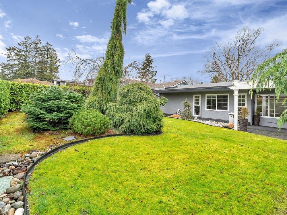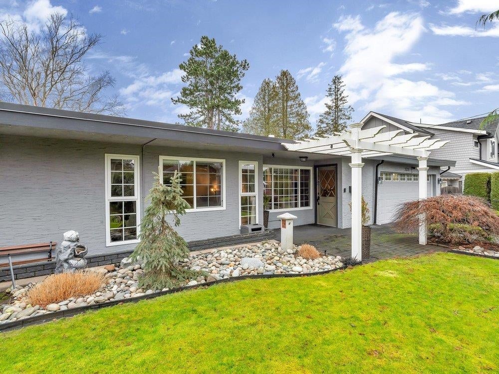 Beautiful updated rancher in Pebble hill area in Tsawwassen, this home offers the perfect blend of comfort & outdoor living. Situated on an expansive 8,900 sq ft lot with mature privacy hedging. The meticulously landscaped garden is a private oasis featuring multiple sitting areas, pergola & underground sprinkler system. The rear outdoor space is an entertainer's dream, complete w glass-covered patio, pergola, gazebo, outdoor kitchen & ample space for hosting family & friends. Step inside to a 3 bed home with an open concept living / dining & updated kitchen w thoughtful design. Hardwood flooring, cozy gas f/p, & skylights throughout create a bright & inviting atmosphere. Double garage + multiple storage areas! Steps from Diefenbaker Park!!! OPEN HOUSE Sun. 25th 2-4
