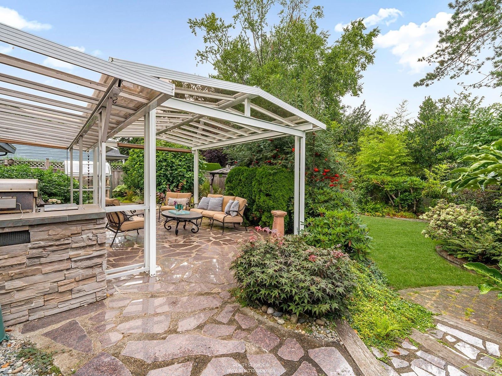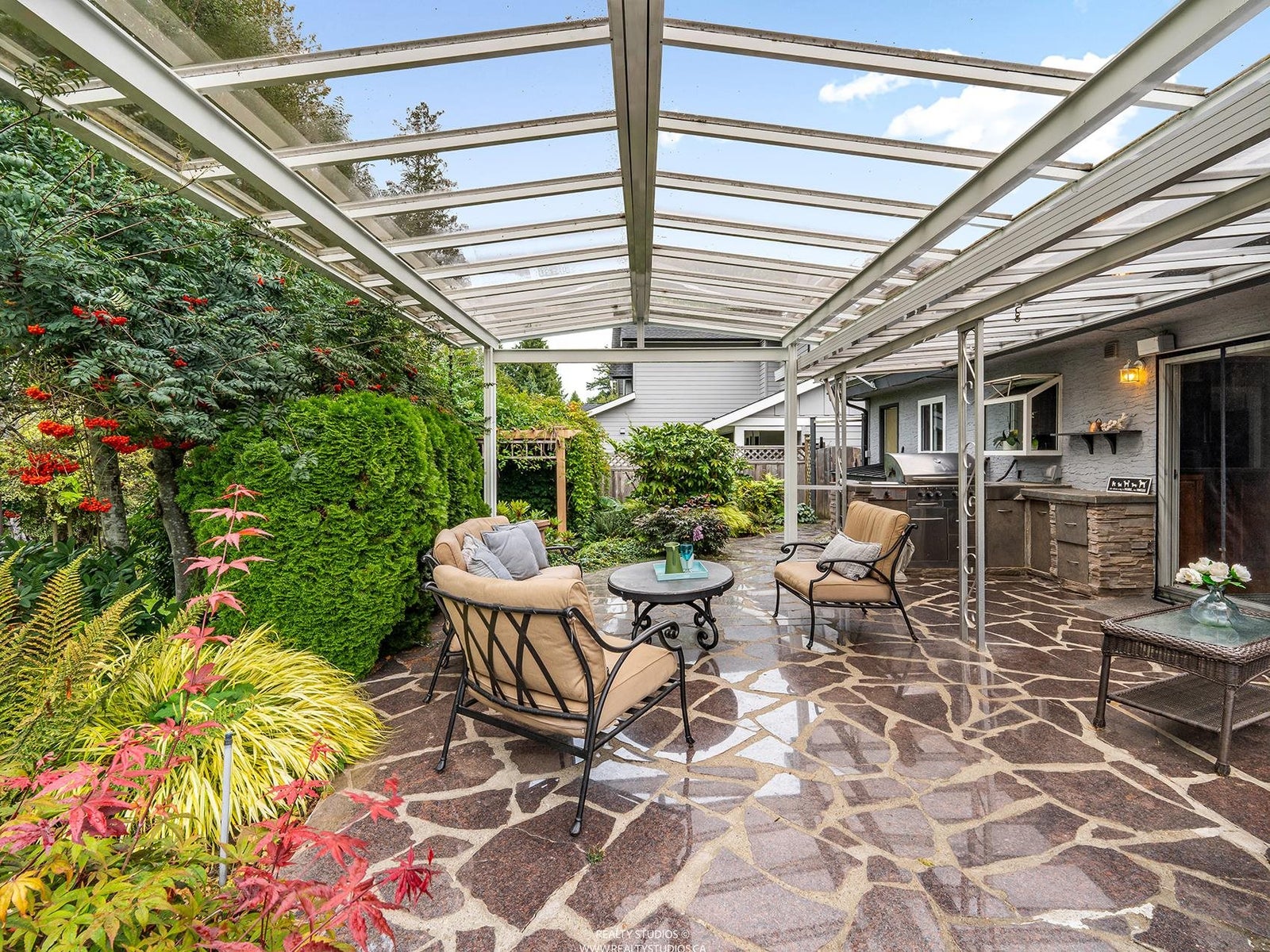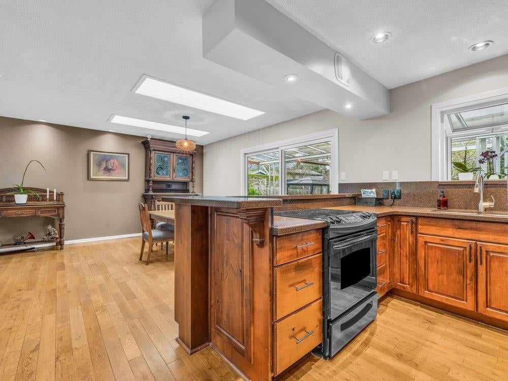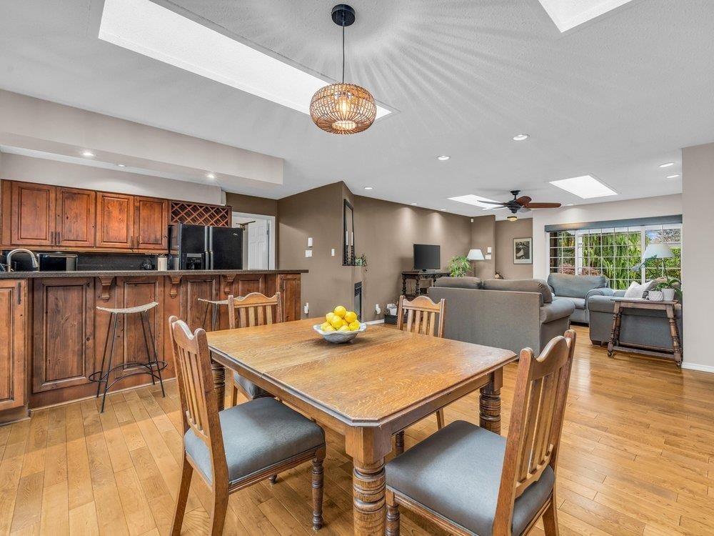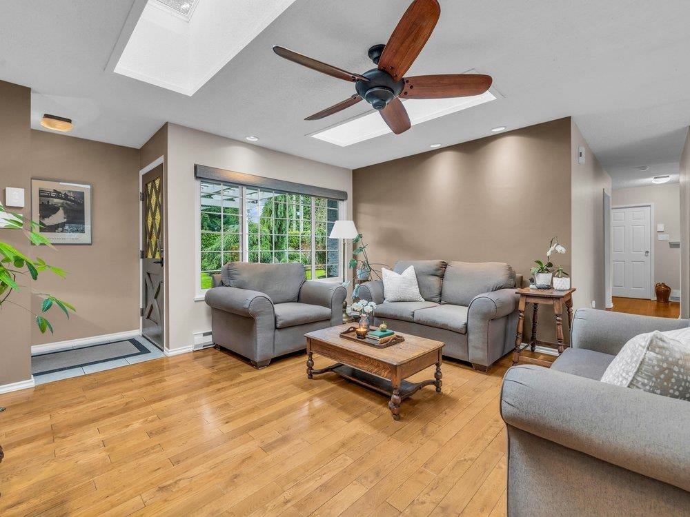 Beautiful updated rancher in Pebble hill area in Tsawwassen, this home offers the perfect blend of comfort & outdoor living. Situated on an expansive 8,900 sq ft lot with mature privacy hedging. The meticulously landscaped garden is a private oasis featuring multiple sitting areas, pergola & underground sprinkler system. The rear outdoor space is an entertainer's dream, complete w glass-covered patio, pergola, gazebo, outdoor kitchen & ample space for hosting family & friends. Step inside to a 3 bed home with an open concept living / dining & updated kitchen w thoughtful design. Hardwood flooring, cozy gas f/p, & skylights throughout create a bright & inviting atmosphere. Double garage + multiple storage areas! Steps from Diefenbaker Park!!! OPEN HOUSE Sun. 25th 2-4
