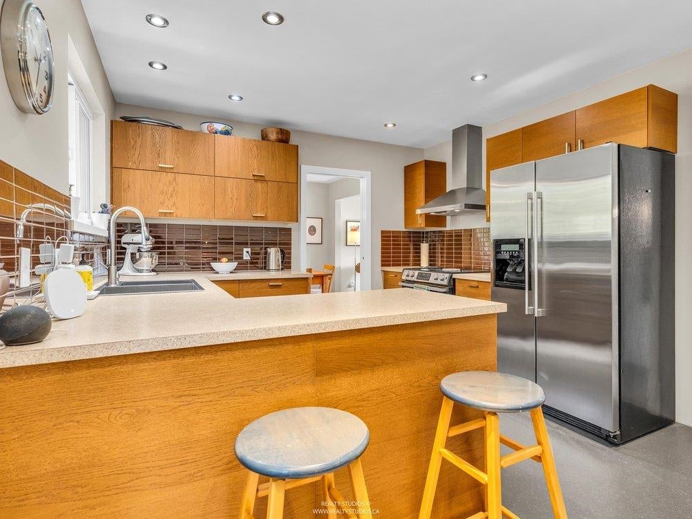 Beautifully renovated 3 bed home + huge office (could be 4th bedroom) on a large, private, corner lot - walking distance to all level of schools, beach trails, golf course, groceries, cafes, restaurants & more! This stylish home was designed w incredible warmth; boasting a gorgeous kitchen + bathrooms reno, beautiful family rm & living rm w cozy wood fireplaces, dedicated dining rm w views to the yard, refinished hardwood floors + new carpets, lighting, nearly all new doors in & out, newer roof, furnace & h/w tank, freshly painted exterior & interior, new 2 car garage door & gorgeous back & side yards w a patio off the family room + a dream raised deck w pergola & gorgeous vines off the kitchen, storage, a greenhouse + still lots of grass to play on.