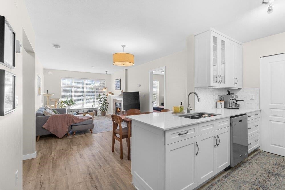Immaculate, inviting, substantially renovated over 800 sq.ft. 2 bed, 2 full bath + Den home in well loved Alameda Park in Kits! With gorgeous renovations incl. newer wide plank beach inspired flooring, 2 gleaming spa inspired ensuite bathrooms, stunning kitchen reno incl. cabinetry, quartz counters, S/S appliances, new fixtures & lighting & a pantry with pull out drawers. This home boasts all spacious rooms, a w/in closet in the large primary bedroom, a great dining room space, the large living room with a cozy gas fireplace plus a spectacular private outdoor patio area off the living room & 2nd bedroom. This home is a perfect '10'! No expense was spared in this impressive reno. Walk to Jerico or Kits Beach or stroll to local shops & restaurants. This condo truly feels like a 'home'